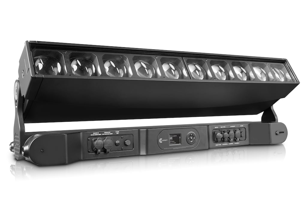 Die Volero Batten Aqua ermöglicht die separate Steuerung des Zooms in 2 Gruppen von 5 nebeneinander liegenden Linsen, wodurch eine dynamische Bewegung des Lichtstrahls entstehe.