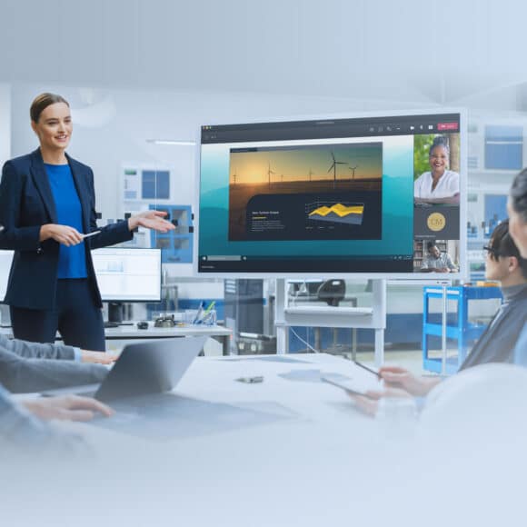 Diese Art der Zusammenarbeit müsse über die traditionellen Besprechungsräume hinausgehen und eine konsistente Zusammenarbeit in informellen Räumen wie Lounges, Cafeterias, Huddle Spaces und anderen Umgebungen ermöglichen. Mit Wireless Conferencing und einem lokalen Display soll das nächste große Meeting überall beginnen können und auch Teilnehmer:innen von außerhalb sollen problemlos einbezogen werden.