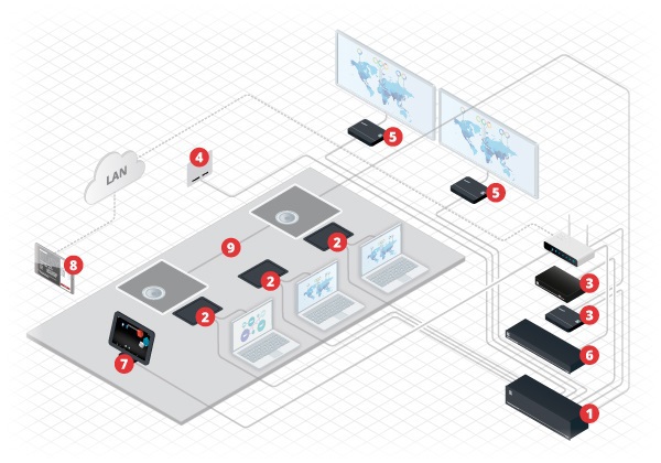 Ausgestattet mit Präsentations- und Steuerungstechnologie, Verbindungssicherheit und Einbindung marktführender Collaboration, unterstützt Kramer@Work eine Vielzahl von AV-Quellen, Displays oder Projektoren und die gleichzeitige Darstellung verschiedener Inhalte.