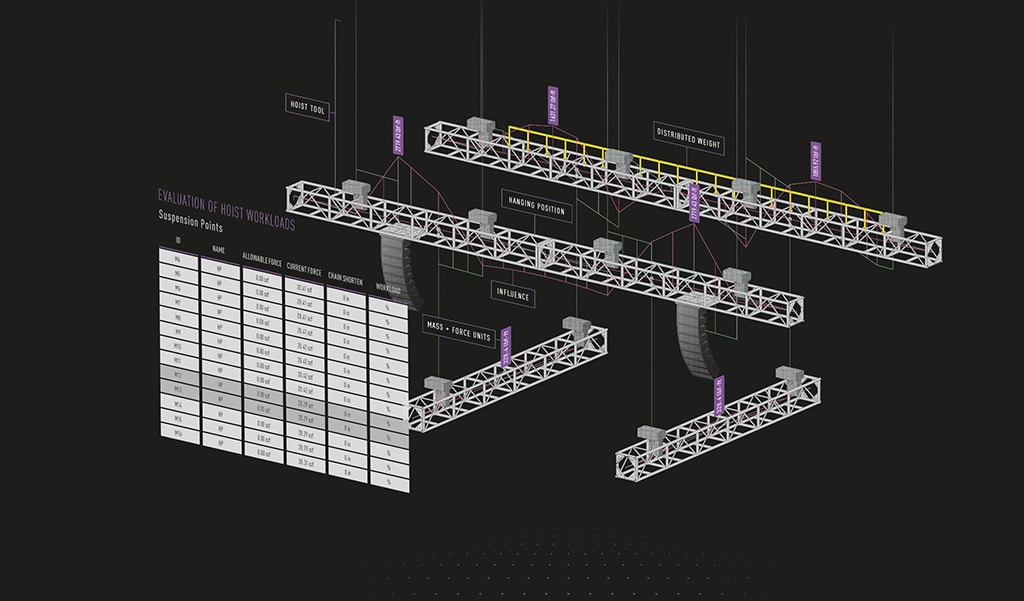 Das neue Zusatzmodul Braceworks ermöglicht darüber hinaus die statische Berechnung von Traversenkonstruktionen unter Last, um deren Sicherheit und die Einhaltung von technischen Normen zu gewährleisten. Es bietet Planern zum ersten Mal einen vollständig integrierten Workflow von der Konstruktion über die Analyse bis zur Dokumentation. Braceworks kann als eigenständiges Zusatzmodul für Vectorworks Spotlight erworben werden.