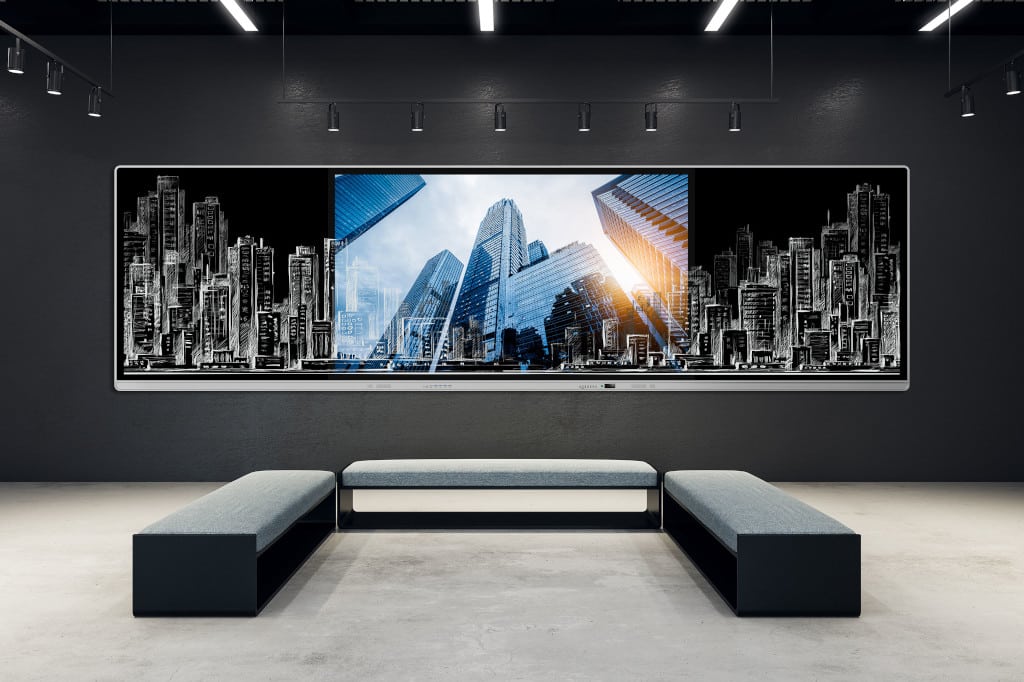 Die Breite der Blackboard-Fassade beträgt 4,2m. Zudem sei der 86“-Touchscreen „besonders hell“ und deswegen für scharfe Darstellungen von Videos, Online-Konferenzen, High-Definition Internet, digitalen Whiteboards und Kollaborationssoftwares in 4K-Auflösung geeignet. Ein Dual-Rechner soll alle Basisfunktionen auf Android-Ebene zur Verfügung stellen. Die Windows-11-Pro-Oberfläche verfügt über 32GB RAM und ein 256GB SSD-Speichermedium.