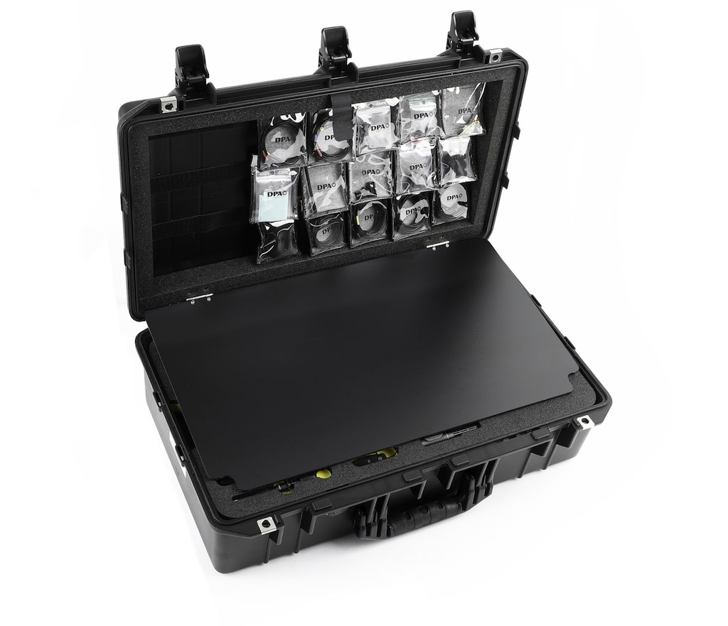 Das DRK4001 Ultimate Recording Mikrofon Set enthält noch mehr Mikrofone. In diesem Koffer befinden sich unter anderem DPA-Kondensatormikrofone und verschiedene funktionale Zubehörteile. Das DRK4001 kann auch bei Live-Aufnahmen eingesetzt werden.
