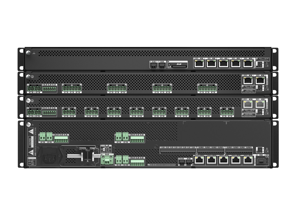 Die integrierte OMNEO-IP-Architektur ermöglicht die Nutzung von Dante-Audio sowie Kontrolle und Monitoring über AES67 und AES70 Protokolle. Darüber hinaus kann Promatrix 9000 mittels Web-Browser über das IP-Protokoll mit anderen Geräten wie PCs oder Laptops verbunden werden und verfügt über ein Open-Interface zur Kommunikation mit anderen Systemen, was Fernsteuerung, -Diagnose und -Wartung ermöglicht.