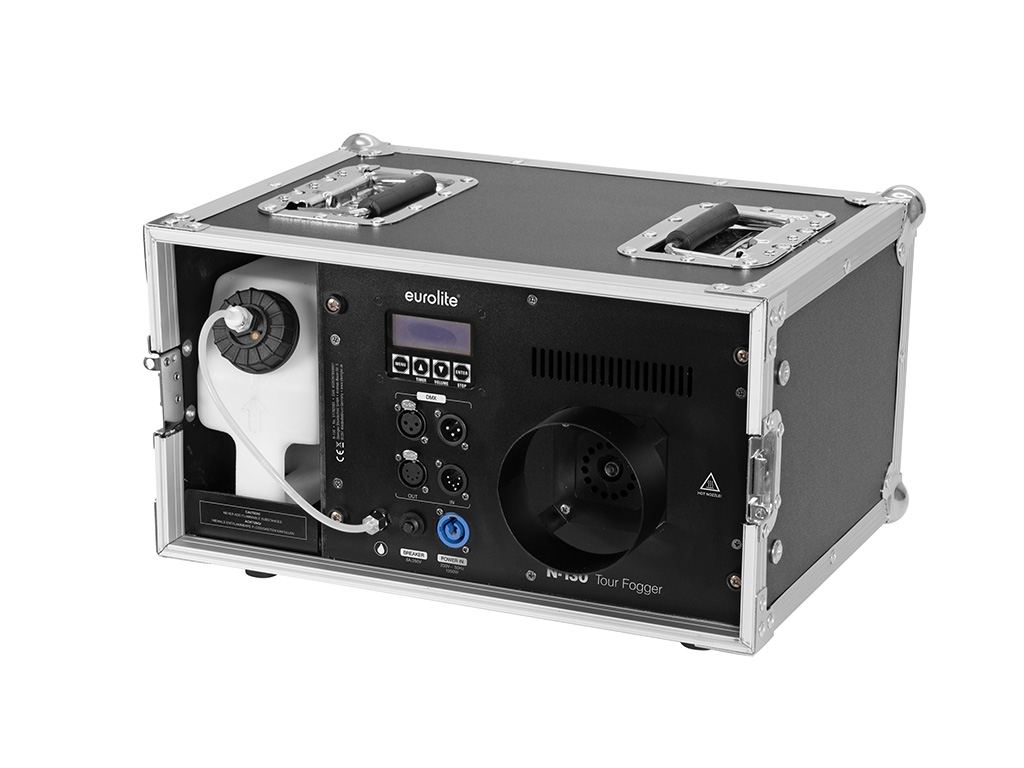 Die kompakte Nebelmaschine N-130, die im robusten Flightcase verbaut ist, sei laut Hersteller leicht transportierbar und verfüge über einen innovativen Schnellverschluss am Fluidtank. Damit soll die N-130 ideal für Touring-Einsätze, Bühnen und Diskotheken sein.