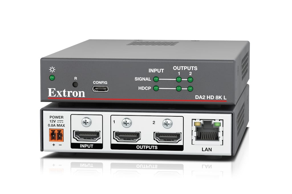 Der Extron DA2 HD 8K L, ein HDCP-2.3-kompatibler Verteilverstärker für HDMI-2.1-Signale, ist ab sofort verfügbar. Er unterstütze Auflösungen bis zu 8K/30 @ 4:4:4, einschließlich 5K-Anwendungen wie z.B. für Microsoft Teams 21:9 in Front Row-Installationen.