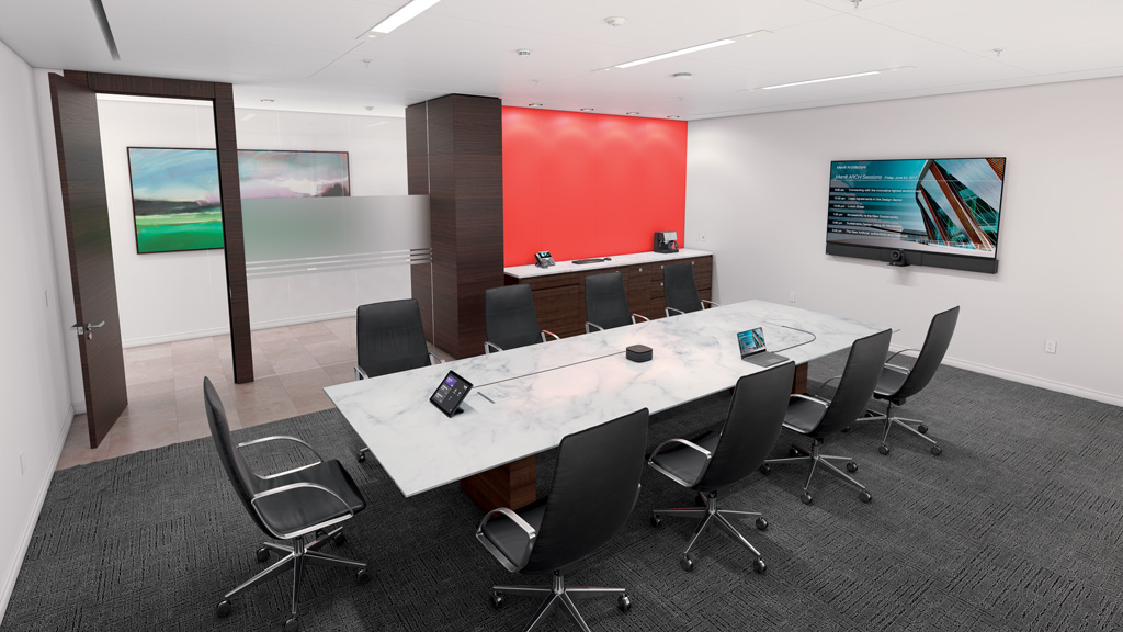 Als Teil dieses Konferenz-, Steuerungs- und Automatisierungs-Ökosystems können auch Belegungssensoren hinzugefügt werden, um die Systemleistung zu automatisieren und die Displays einzuschalten, wenn Teilnehmer einen Raum betreten, und sie auszuschalten, wenn der Raum leer ist.