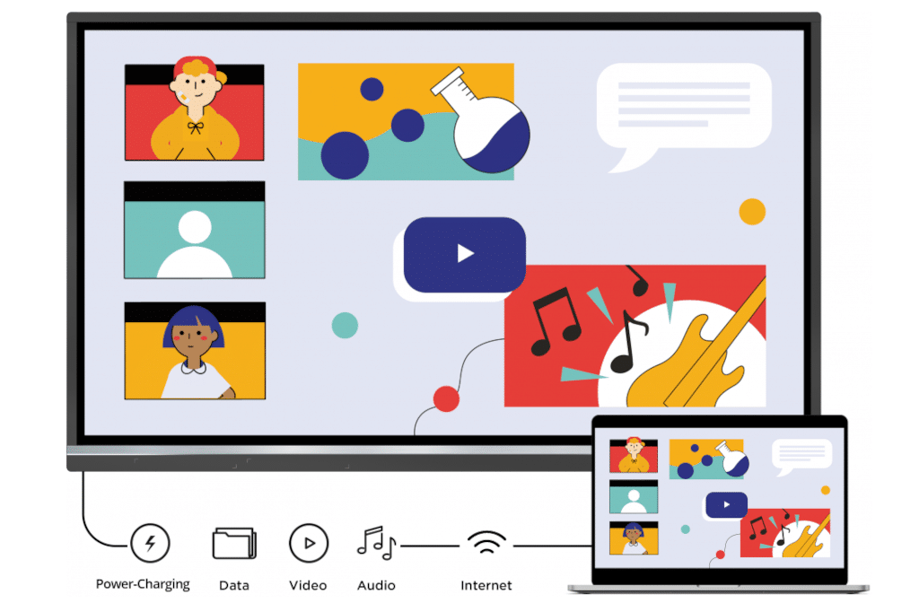 Darüber hinaus ist ein USB-C Anschluss vorhanden, der als Plug-und-Play-Schnittstelle dient und der zugleich externe Geräte mit einer Ladeleistung von 65W versorgen kann. Zusätzlich bietet das Display: 3x HDMI (2.0), RS232, je ein Slot für WiFi-Modul und OPS-PC, 6x USB-A, 2x USB-B und 2x RJ45. Als Betriebssystem setzt das IFP50-5 auf Android 11, das um Programme wie die myViewBoard-Whiteboard-Software sowie die ViewBoard-Cast-Streaming-Software ergänzt wird. Der myViewBoard-Manager erlaubt es IT-Teams und der Gebäudetechnik, das IFP auch über das Netzwerk hinweg zu steuern und zu warten.