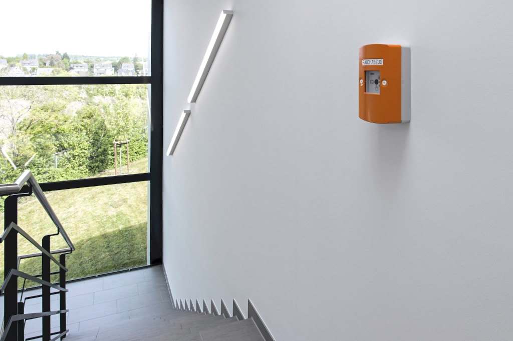Geze RWA-Notstromsteuerzentralen im Treppenhaus (Bild: Geze)
