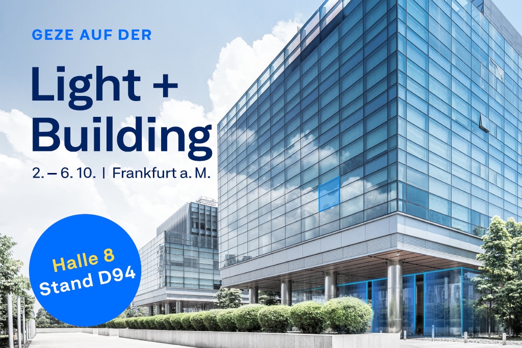 Besucher finden die GEZE-Experten auf der Light + Building vom 2. bis 6. Oktober 2022 an Stand D94 in Halle 8.0.