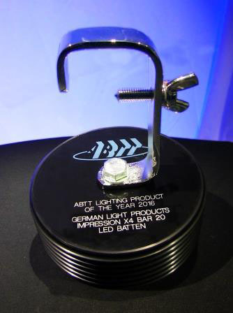 Erneut wurden die Impression X4 Bars ausgezeichnet: Diesmal konnten die Bars die Vereinigung Britischer Theatertechniker – kurz ABTT (Association of British Theatre Technicians) – überzeugen, die den begehrten Preis für das beste Produkt aus der Rubrik Beleuchtungstechnik an die Impression X4 Bars von GLP verlieh.