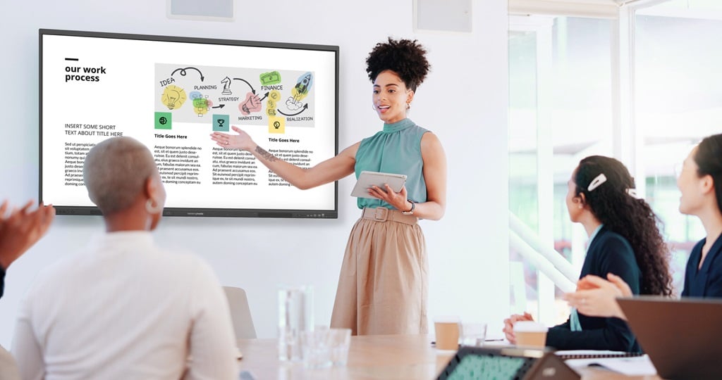 Mithilfe des neuen Interactive Whiteboards lassen sich brillante Ideen in bester 4K-UHD-Bildqualität darstellen. Die Zero-Gap-Technologie und der Anti-Glare-Display garantieren zudem hohen Kontrast und einwandfreie Lesbarkeit aller Inhalte – auch bei direkter Sonneneinstrahlung. Bis zu 50 Teilnehmerinnen und Teilnehmer können sich gleichzeitig auf den Bildschirm aufschalten und mitarbeiten, bis zu neun der verschiedenen Bildschirm-Ansichten kann das Whiteboard dabei gleichzeitig anzeigen. Das Multitouch-Display sorgt für ein natürliches Schreibgefühl und lässt sich per Hand oder Stift bedienen. Das Interactive Whiteboard ist mit einem EDLA-zertifizierten Android-13-Betriebssystem ausgestattet und arbeitet dank Energiesparmodus sowie Helligkeitssensor besonders energieeffizient. Ein großer Arbeits- und Festplattenspeicher schaffen auch langfristig Platz für viele, große Dateien.