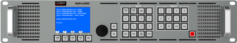 Der HQPro1000 unterstützt vier Ebenen, die sich überall auf dem Ausgabedisplay positionieren, mischen und in der Größe verändern lassen sollen. Die Umschaltung wird über nahtlose Transitionen, Schnitte oder ultraschnelle Umschaltung realisiert. Die Skalierung übernimmt Calibres branchenführende, firmeneigene HQUltra-Technologie, die extrem geringe Latenzzeiten bieten soll und mit den RGB-Formaten 4K50/60 4:4:4 arbeitet – eine Highend-Funktion, die laut eigener Aussage sonst ausschließlich deutlich kostenintensiveren 4K-Umschalter/-Skalierern vorbehalten war. Zu weiteren Funktionen zählen vertikale und horizontale Spiegelung, AOI-Unterstützung (Area Of Interest), EDID- und HDCP-Management, Standbild und lückenlose Farbkontrolle.