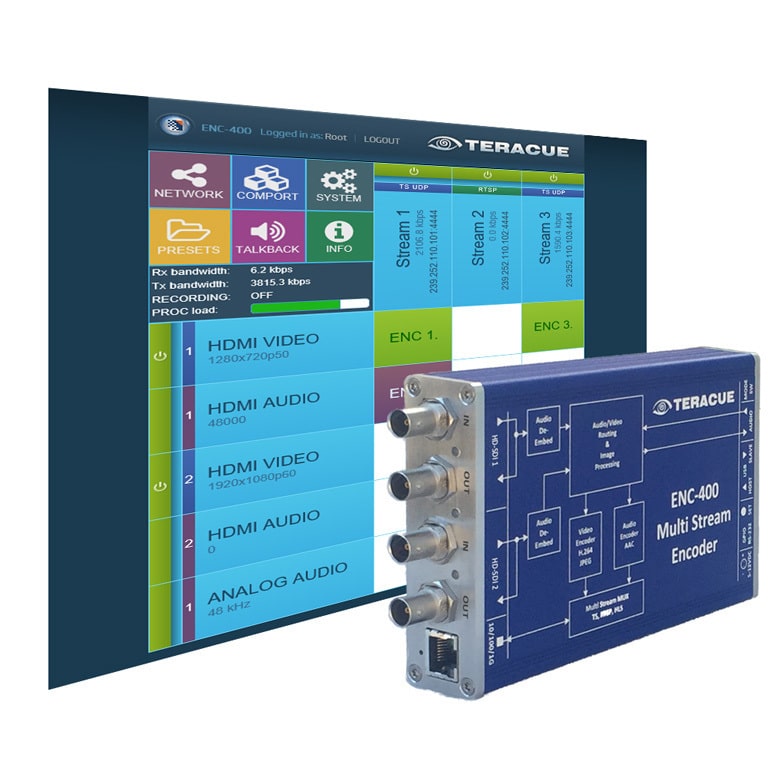 Beim IBC-Messeauftritt der Teracue GmbH ist z. B. der Streaming Encoder ENC-500-HDMI dabei. Das Gerät streamt ein HDMI Videosignal in HEVC/H.265 oder H.264 mit vier verschiedenen Protokollen (RTSP, RTMP, HTTP und UDP). Der ENC-500 Encoder wurde speziell für IPTV- und Live Streaming Anwendungen entwickelt dient zur Verteilung einzelner Computer-DVI-Signale über Netzwerke oder das Internet. Mögliche Einsatzbereiche des Encoders sind medizinische, militärische und weitere sicherheitsrelevante Anwendungen in Kontrollräumen oder Übungsanwendungen, in denen HDMI/DVI Signale in hoher Auflösung von medizinischen Instrumenten und Kameras, von Radarsystemen, Digital Signage Playern oder jeglicher anderer Desktop Anwendung geteilt, veröffentlicht, verbreitet oder aufgenommen werden müssen.