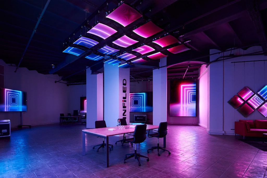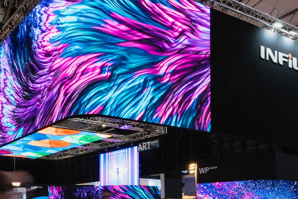 Zu den Displays von Infiled gehören eine 4K WP0.9m4-Videowand, die sich für Unternehmens- und Kontrollräume eignet, ein 3x3x3m XR-Studio für eine Echtzeit-Demonstration von xR- und virtuellen Produktionslösungen, mehrere Lösungen für Eckanwendungen, die Touring-Lösung TITAN-X sowie weitere Lösungen für den Innen- und Außenbereich.