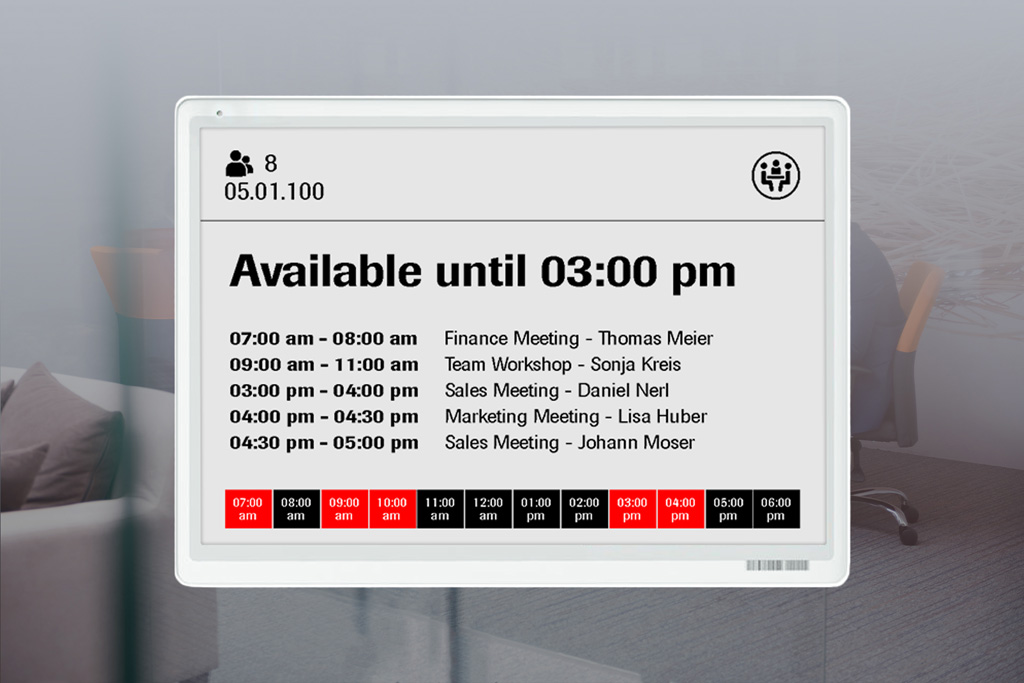 Zusätzlich zur manuellen Beschriftung von Displays über die Browseranwendung oder eine App ist auch die automatische Aktualisierung von Inhalten möglich. Diese Funktion sei vor allem in einem dynamischen Arbeitsumfeld relevant und trage zur Reduzierung der Betriebskosten bei. Die Automatisierung von Prozessen lässt sich zum Beispiel über eine Schnittstelle zum Raumbuchungssystem realisieren. So kann gewährleistet werden, dass die Beschriftung am Besprechungsraum auch bei sehr kurzfristigen Raumbuchungen oder Änderungen stets auf dem aktuellen Stand ist.