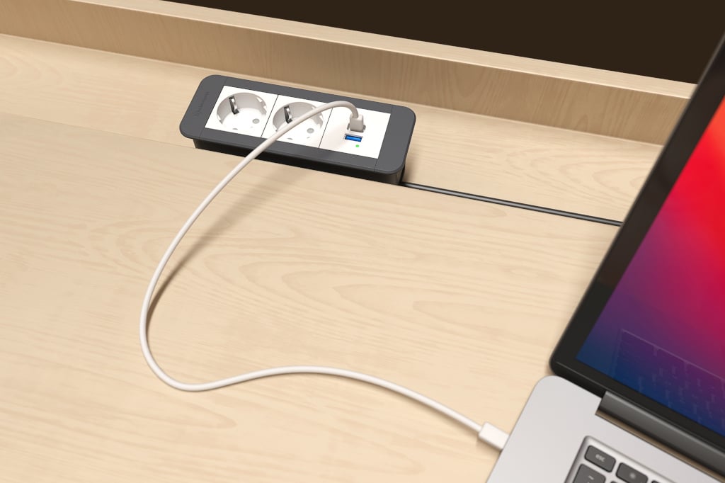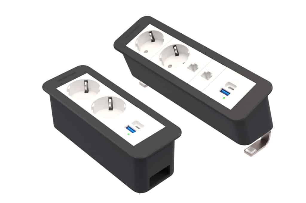 Für die Tischanschlussfelder kommen erstmals auch USB-Charger mit USB Power Delivery und Quick Charge zum Einsatz. Der Ladestrom biete bis zu 30W. Das CablePort Officedesk ist mit einer Klemme für das Anbringen an Tischplatten in Stärken von 21mm bis 40mm ausgestattet. Die Alternative, das CablePort Officeframe, ist so konzipiert, dass sie sich wahlweise auf den Tisch stellen und anschrauben lässt oder auch in die Tischplatte eingelassen und mit der mitgelieferten Klammern befestigt werden kann.