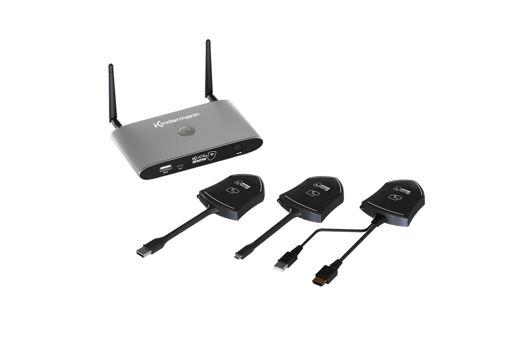 Mit den Funktionserweiterungen ist Klick & Show die Collaborationlösung auf dem Markt, die kabellos per Transmitter, per Software-Client, per App, Miracast oder nativ per Airplay genutzt werden kann. Die Unterstützung von allen gängigen Betriebssystemen, verschiedene Transmitter mit USB-A-, HDMI- und USB-C-Anschluss und das Preis-/Leistungsverhältnis machen Klick & Show laut Kindermann zu einer „der flexibelsten Anwendungen auf dem Markt.“