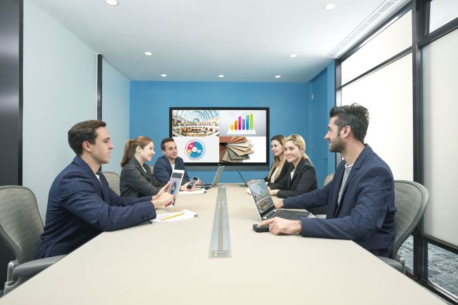 Neue Optionen in der Zusammenarbeit eröffnet die Split-Screen-Funktion des InstaShow WDC20, mit bis zu vier Bildbereichen. Das heißt, bis zu vier Vortragende können von verschiedenen Geräten aus gleichzeitig präsentieren oder ihre Inhalte teilen und somit die Interaktion und Kreativität eines Meetings erhöhen.