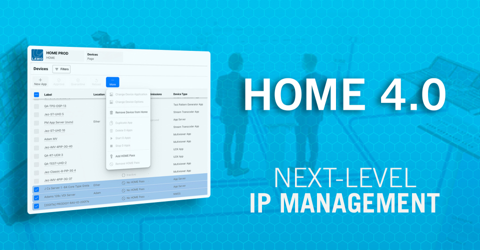Im Mittelpunkt des diesjährigen Messeauftritts stehe HOME 4.0, die neueste Entwicklungsstufe von Lawos IP-nativer Managementplattform für Broadcast-Infrastrukturen. HOME 4.0 biete grundlegende Verbesserungen der Architektur und ein vereinfachtes Lizenzmodell, das den betrieblichen und finanziellen Anforderungen moderner Produktionsstätten gerecht werde.