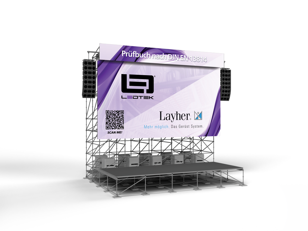 In Kooperation mit Expo Engineering und Layher, wurde speziell für die Pro-Serie eine Gerüstkonstruktion entwickelt, die sowohl über Ledtek als auch über Layher bezogen werden kann. Die einzelnen Elemente des Systems sind zu 100 Prozent aufeinander abgestimmt. Statische Berechnungen garantieren die Sicherheit der neuen Serie und sind in dem ihr beiliegenden Prüfbuch festgehalten.