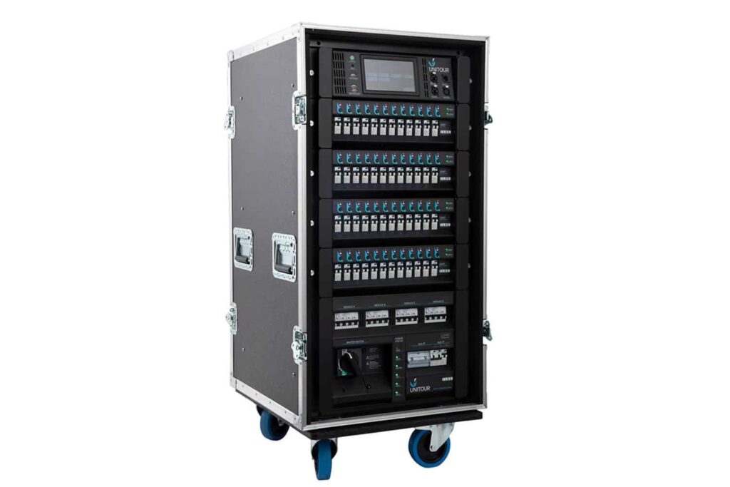 Unitour bietet Schutz für den Anwender sowie alle angeschlossenen Audio-, Video- und Beleuchtungssysteme. Zu den Merkmalen gehören RCBOs (kombinierte Leitungsschutz-/Fehlerstromschutzschalter) pro Kanal, welche sowohl bei Überstrom als auch bei einem Fehlerstrom/Erdschluss nur den betroffenen Kanal und nicht das ganze Modul außer Funktion setzen. Die Über– und Unterspannungs-Überwachung sorgt für ein permanentes Monitoring der Eingangsspannung und schaltet bei Fehler beispielsweise einem Nullleiter-Abriss umgehend ab und bietet damit Schutz für Inventar und für den Anwender. Der integrierte Hauptlasttrennschalter ermöglicht auch den Einsatz im Messebau.