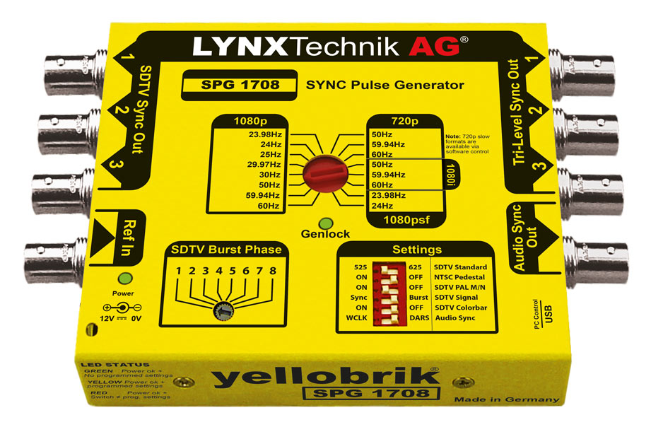 LYNX Technik, Anbieter modularer Interfaces für Signalverarbeitung, kündigt den neuen yellobrik SPG 1708 – Sync-Pulsgenerator mit Genlock- und UHD-Unterstützung an.
