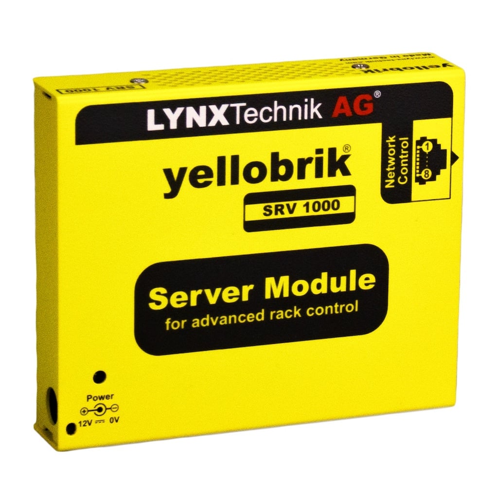 Das SRV 1000 wurde für die Verwendung mit dem Yellobrik Rack Controller und dem Yellobrik Rack Frame entwickelt und bietet eine Ethernet-LAN-Verbindung zu einem Yellobrik-System für eine erweiterte Steuerung (ferngesteuert oder lokal) von mehreren Computern (MAC oder PC) oder Anwendungen von Drittanbietern. Es ermöglicht die Fernsteuerung, Statusüberwachung und Fehlerberichterstattung für alle Yellobrik Module in einem System.