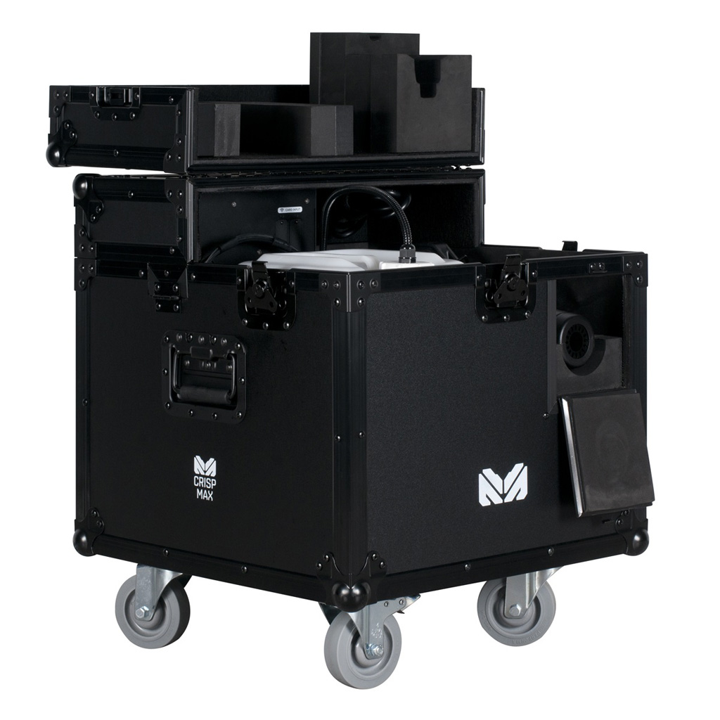 Crisp Max besitzt einen 20-Liter-Fluidtank und ist verbaut in einem touringtauglichen Flightcase mit robusten Rollen für den einfachen Transport. Der 10 m lange Schlauch der Maschine kann beispielsweise an Traversen befestigt und mit Hilfe der optional erhältlichen 10 Meter-Schläuche auf bis zu 50 m verlängert werden.
