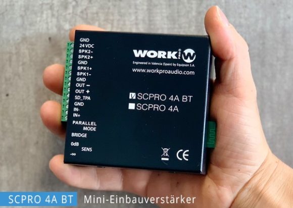 Immer wieder erhält Pro Audio-Technik die Nachfrage nach Mini-Verstärkern für die Festinstallation. Hier ist die Antwort: Work Pro SCPRO 4A BT