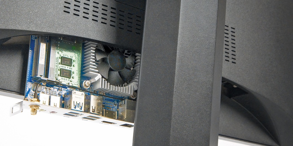 Das PC-Modul in Intels SDM-Standard verfügt über Anschlüsse für USB-C mit DisplayPort, vier USB 3.2-Ports, HDMI 2.1, Gigabit-LAN, Bluetooth sowie zwei WLAN-Schnittstellen. Es ist mit Intel-Prozessoren der Serien Core i3, i5, i7 oder Core Ultra erhältlich, als Betriebssystem läuft wahlweise Windows 11 oder Linux. Der Bildschirm im weit verbreiteten 24-Zoll-Format (Full-HD, 1920×1080) ist höhenverstellbar und lässt für ein entspanntes Arbeiten bei geradem Rücken und Nacken flexibel kippen.