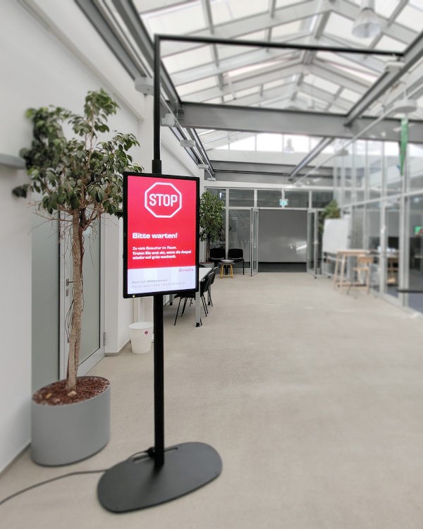 ViCo One ist ein mobiles Zutrittsystem und kommuniziert klar, wann Besucher zutreten dürfen. (Bild: dimedis)