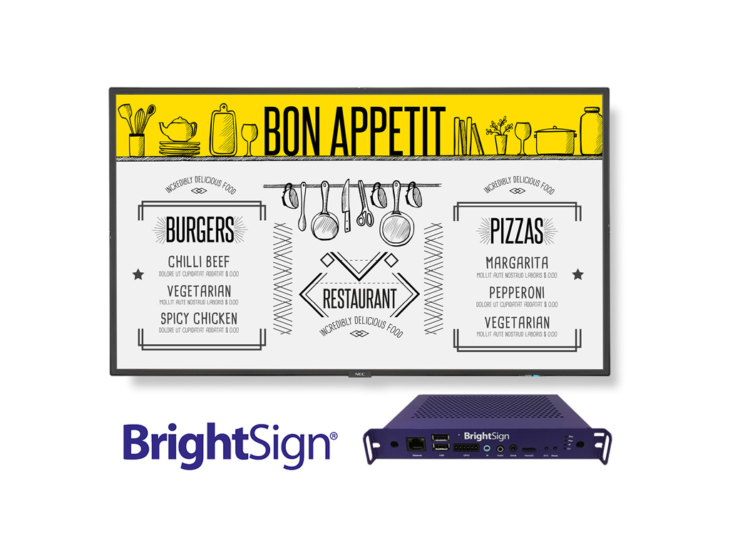 Die neue NEC/Bright Sign-Kombination soll es möglich machen, relevante und zielgerichtete digitale Inhalte zu liefern, um Betrachter in Einzelhandel, Museen, Schnellrestaurants, Unternehmensumgebungen und anderen öffentlichen Einrichtungen zu informieren, zu unterhalten, zu lenken oder zu inspirieren. Die Integration des Mediaplayers in das Display soll nicht nur die Hardware-Investition im Voraus einsparen, sondern rationalisiert auch die Installation, da keine zusätzlichen Kabel und eigenständigen Mediaplayer erforderlich sind.