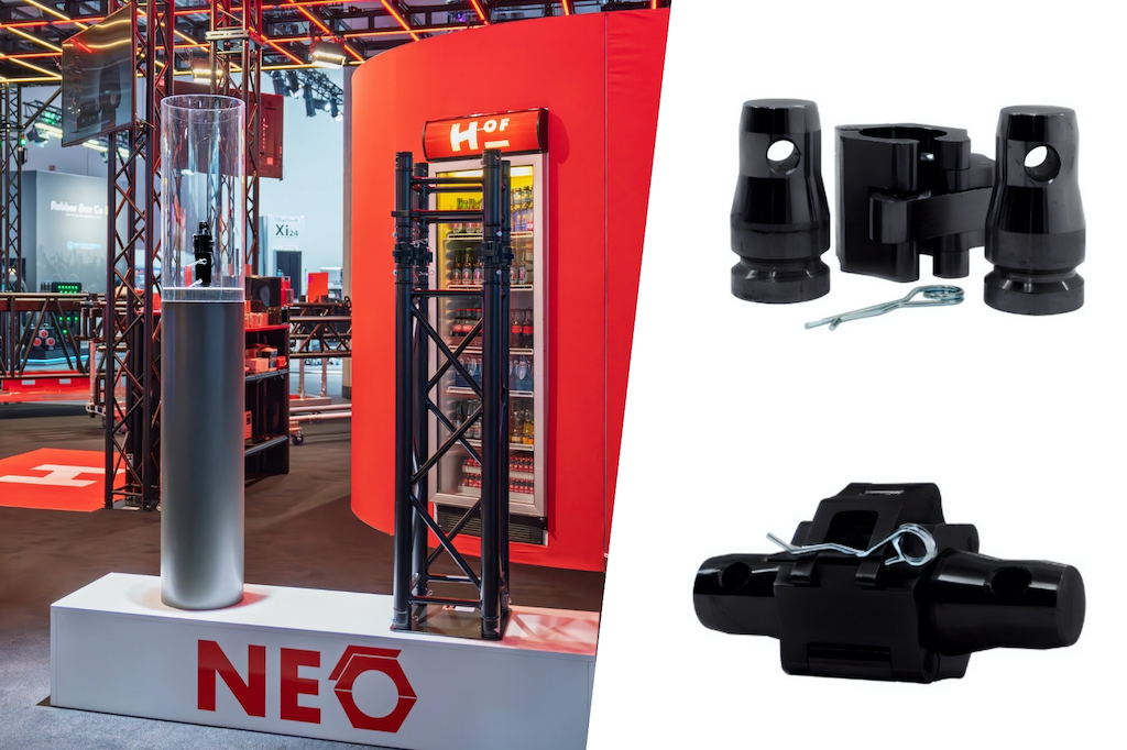 Schnelleren Auf- und Abbau durch das einfache Klicksystem einer Klammer und Lärmreduktion durch Entfall der Truss-Pins verspricht der neue Neo-Truss-Verbinder für das Verbinden von Konusverbinder-Traversen