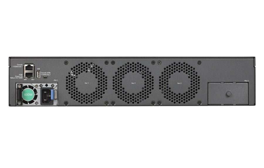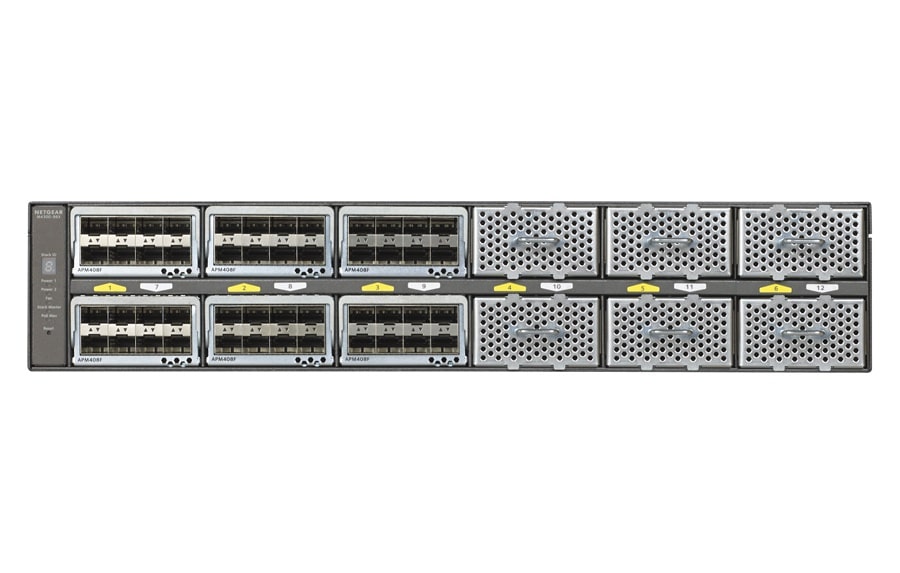 12 leere Steckplätze in 2 HE für 8 x 10G- oder 2 x 40G-Port-Erweiterungskarten (kein Netzteil)
