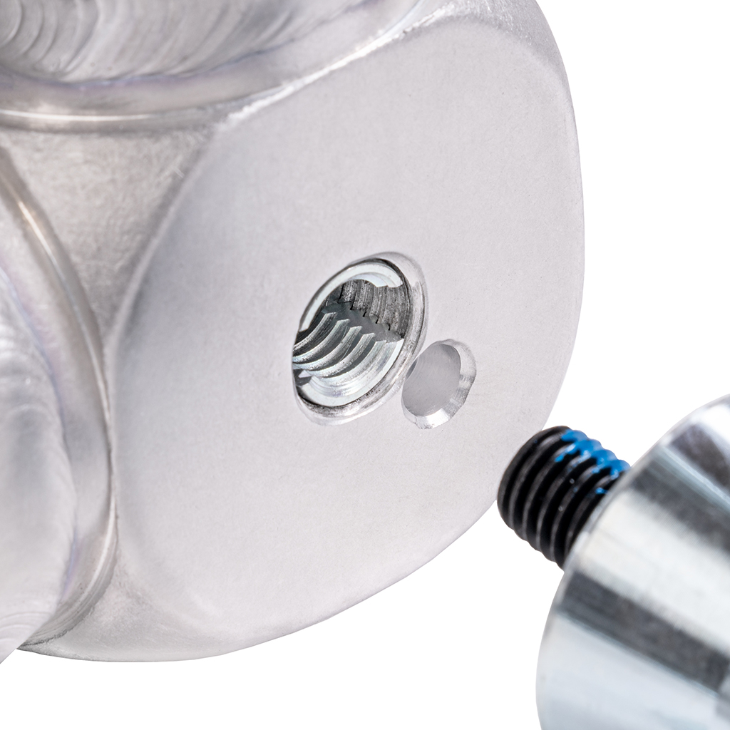 Der XHD Box Corner hat im Vergleich zum klassischen Box Corner ein weiteres wichtiges Feature: Statt eines klassischen Aluminiumgewindes wie bei den bisherigen Box Cornern, verfügt der XHD Box Corner über ein Stahlgewinde. Im Vergleich zum Aluminiumgewinde ist dieses deutlich langlebiger und zuverlässiger.
