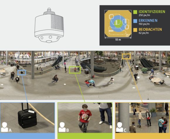 Ein weiterer wesentlicher Aspekt zur Gesamtkostenoptimierung ist die Planung. Diese erfolgt über eine vom Hersteller selbstentwickelte 3D-Software und ein Team von Experten, die einen exakten „Digitalen Zwilling“ der gesamten Kundenumgebung erstellen. Sichtfeldverdeckungen können so umgangen, Kameras und ergänzende Komponenten effizient positioniert und die Mindestauflösungsdichte auf der gesamten Fläche genau geplant werden – letzteres ist eine wichtige Voraussetzung für Gerichtsverwertbarkeit und Analysefunktionen. Aus der Planung generierte „CamCards“ mit genauen Montageinformationen sollen Reibungsverluste bei der Inbetriebnahme auf ein Minimum reduzieren.