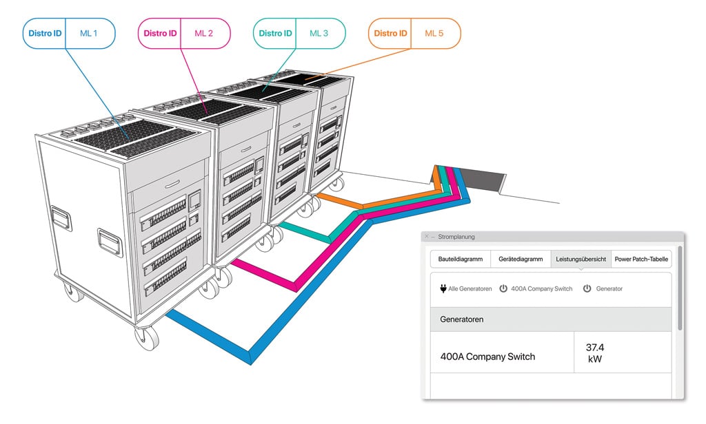 Mit verbesserten Spotlight-Funktionen können jetzt der Kabelpfad und Leistungsbedarf für Veranstaltungen effizient geplant und dokumentiert werden. Inventare, Kabelbaumlisten, Materiallisten, Leistungsübersichtstabellen usw. können direkt in Vectorworks erstellt werden. Kabel zwischen verbundenen Objekten werden automatisch eingefügt und passen sich späteren Änderungen an. Das neue Kabelnavigationssystem zeichnet Kabel, sobald die Ein- und Ausgänge ausgewählt werden.