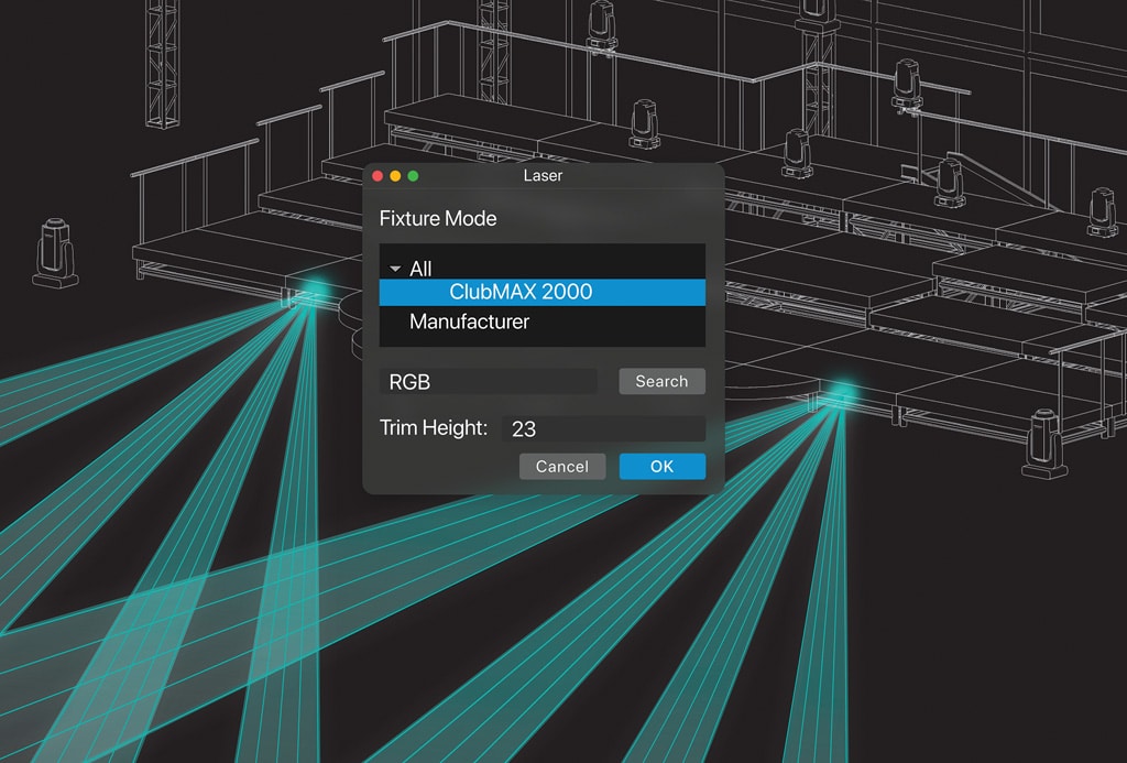 Mit Version 2022 des Echtzeitvisualisierers Vision lassen sich jeder Visualisierung Laser hinzufügen. Vision unterstützt dafür das Netzwerk-Protokoll von Pangolin-Laser-Systems – einem führenden Anbieter für Lasershow-Software und Showlaser Interfaces. Im Zusammenspiel mit der Pangolin BEYOND-Software können Laser jetzt sowohl in Pangolin als auch in Vision konfiguriert und in Echtzeit visualisiert werden.