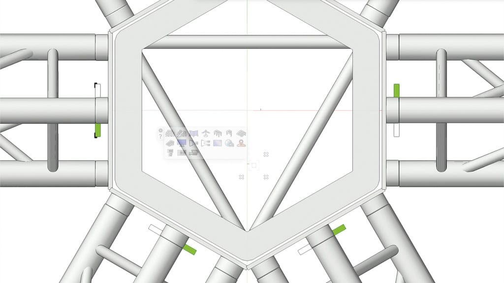Durch neue Magnetobjekte innerhalb von Traversen soll das automatische Verbinden noch effizienter werden. Die Magnete stellten sicher, dass Traversen immer korrekt ausgerichtet zusammengefügt werden. Fehlersuche und Nachbearbeitung werden so von Anfang an minimiert – eine Verbesserung für die Riggung-Analyse mit dem Statik-Modul Braceworks.