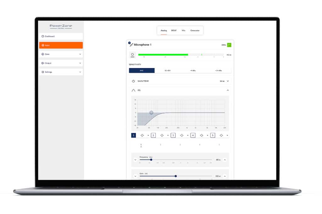Alle DSP-Funktionen wurden in Blaze Audios Web-App PowerZone™ Control integriert.