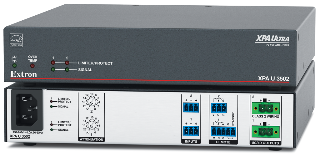 Der XPA U 3502 soll die Möglichkeit bieten, Hochleistungs-Verstärker zu installieren, ohne dass Rack-Räume für die Belüftung verwendet werden müssen, wodurch wertvoller Rack-Platz gespart werden soll. Er verfügt über ein Class-D-Verstärkerdesign mit Leistungsfaktorkorrektur, niedrigem Einschaltstrom, abschaltbarem Auto-Standby mit schnellem Aufwachen und der patentierten CDRS – Class D Ripple Suppression von Extron.