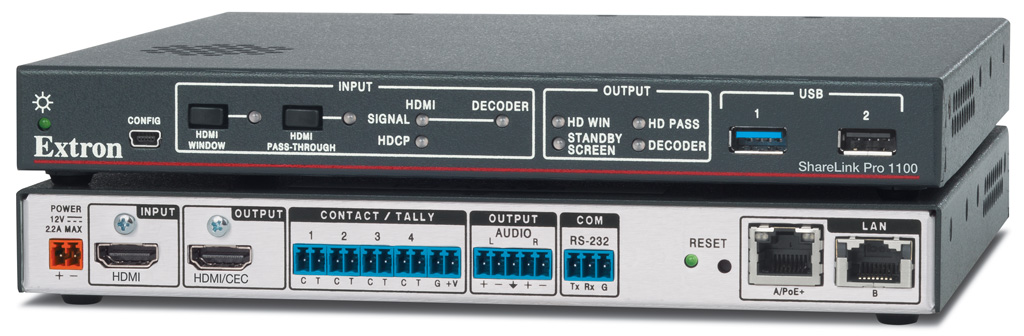 Extron gibt die sofortige Verfügbarkeit des ShareLink Pro 1100 bekannt zu geben, ein Kabel- und Drahtlos-4K-Präsentationssystem, das es jedem ermöglichen soll, Inhalte von Computern, Tablets oder Smartphones auf einem Display zu präsentieren und so die Zusammenarbeit zu erleichtern.