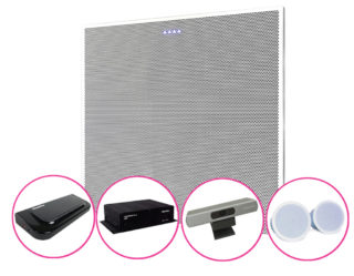 Das Trisonus 10 Lautsprechersystem kann aufgrund seiner flachen Bauweise direkt neben großen Displays montiert werden. Der neue Lautsprecher ist für grössere Konferenzräume, Lounges, Bars und Restaurants entwickelt worden.