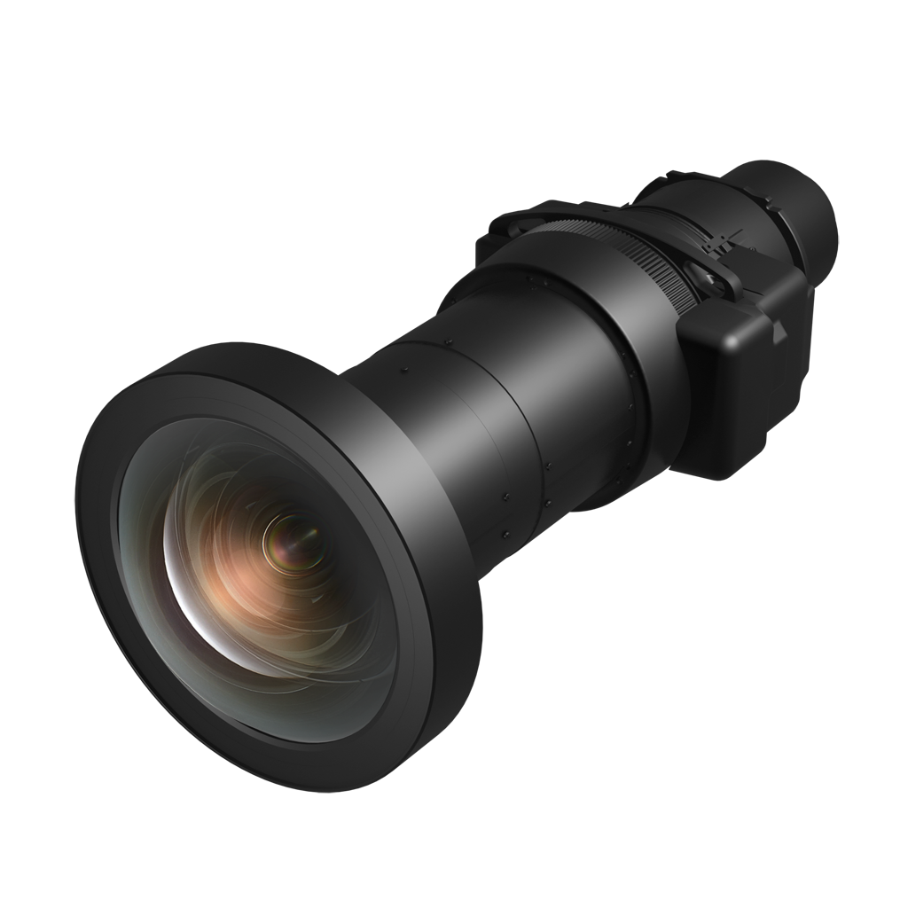 Das Throw-Ratio der Objektive von 0,330-0,354:1 (WUXGA) erzeugt ein 200-Zoll-Bild in einem Abstand von etwa 1,42 m. Der störende Spalt zwischen der Oberkante des Bildes und der Decke soll eliminiert werden, um eine größere visuelle Wirkung zu erzielen. Der Projektor lässt sich direkt unter der Decke montieren, ohne dass die Gefahr bestünde, dass ein zu weit hervorstehendes Objektiv die Leinwand behindert. Bei der Rückprojektion könne der Projektor in der Mitte der Leinwand platziert werden, um die Helligkeit gleichmäßig von der Mitte zu den Ecken und Kanten zu verteilen.