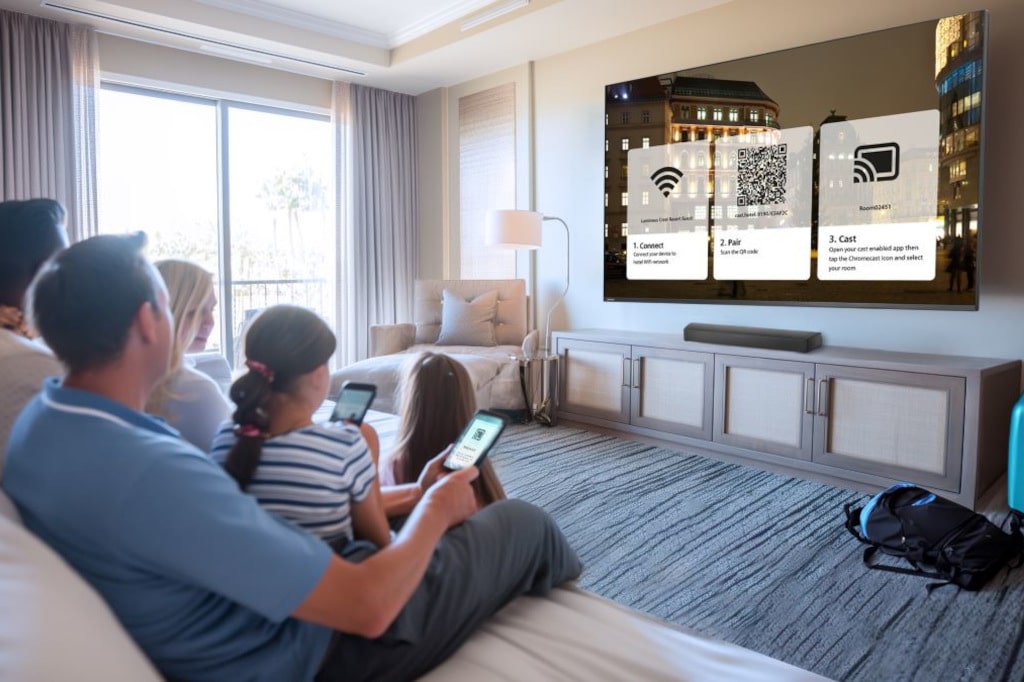 Bei der Entwicklung sei besonderer Wert auf Einfachheit gelegt worden. Die Gäste können ihr Telefon oder ein anderes mobiles Gerät mit dem Fernseher koppeln, indem sie den auf dem Fernsehbildschirm angezeigten QR-Code scannen, ohne dass eine Verbindung zu einem anderen WiFi-Netzwerk erforderlich sei. Nach erfolgreicher Kopplung können die Gäste Inhalte von ihren Konten (einschließlich DAZN, Disney+, Prime, YouTube und mehr) auf den Fernseher übertragen.