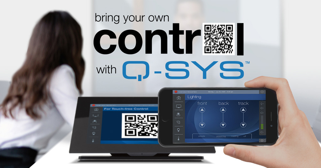 Nutzer müssen lediglich ihre Smartphone-Kamera auf einen dieser QR-Codes richten. Das Smartphone zeigt automatisch die festgelegten Steuerelemente des Raums in der Q-SYS Control App oder im Standard-Webbrowser an.