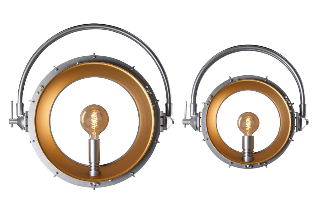 Der HolyPATT und der größere MolyPATT zeigen sich in einem Aluminium-Finish und erzeugen ein Tungstenlicht für atmosphärische Effekte – geeignet als Requisiten im szenischen Set oder zur Verstärkung der Atmosphäre in beliebigen Räumen.