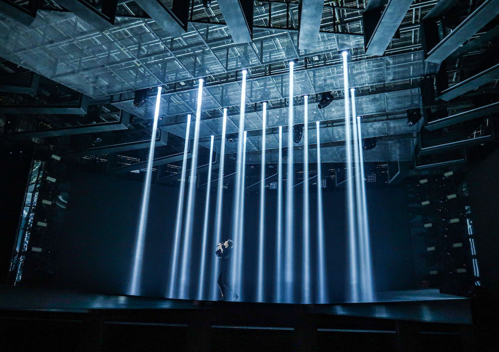 Die Fortes wurden auf dem Boden positioniert, füllten den Hintergrund beider Räume aus und schickten starke Strahlen und Gobo-Looks von oben auf die Bühne. Als einzige Scheinwerfer auf dem Boden spielten sie auch eine sehr strategische Rolle, denn sie waren hinter dem Horizont der 1,8 Meter hohen Bühne versteckt und durchdrangen alle Kameraeinstellungen mit ihren Strahlen.