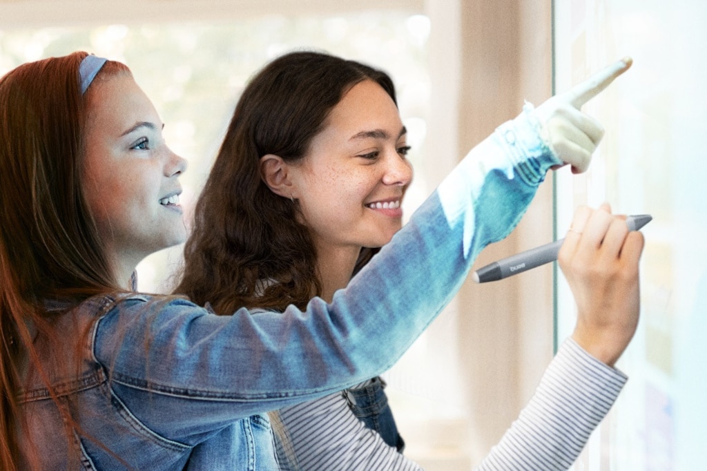 CPU und Multitouch: Ein Acht-Kern Prozessor und das vorinstallierte Android-11-Betriebssystem sollen für ein verzögerungsfreies und natürliches Schreibgefühl sorgen. Durch die 40-Punkt Multitouch-Technologie können mehrere Anwender:innen gleichzeitig am interaktiven Display arbeiten.