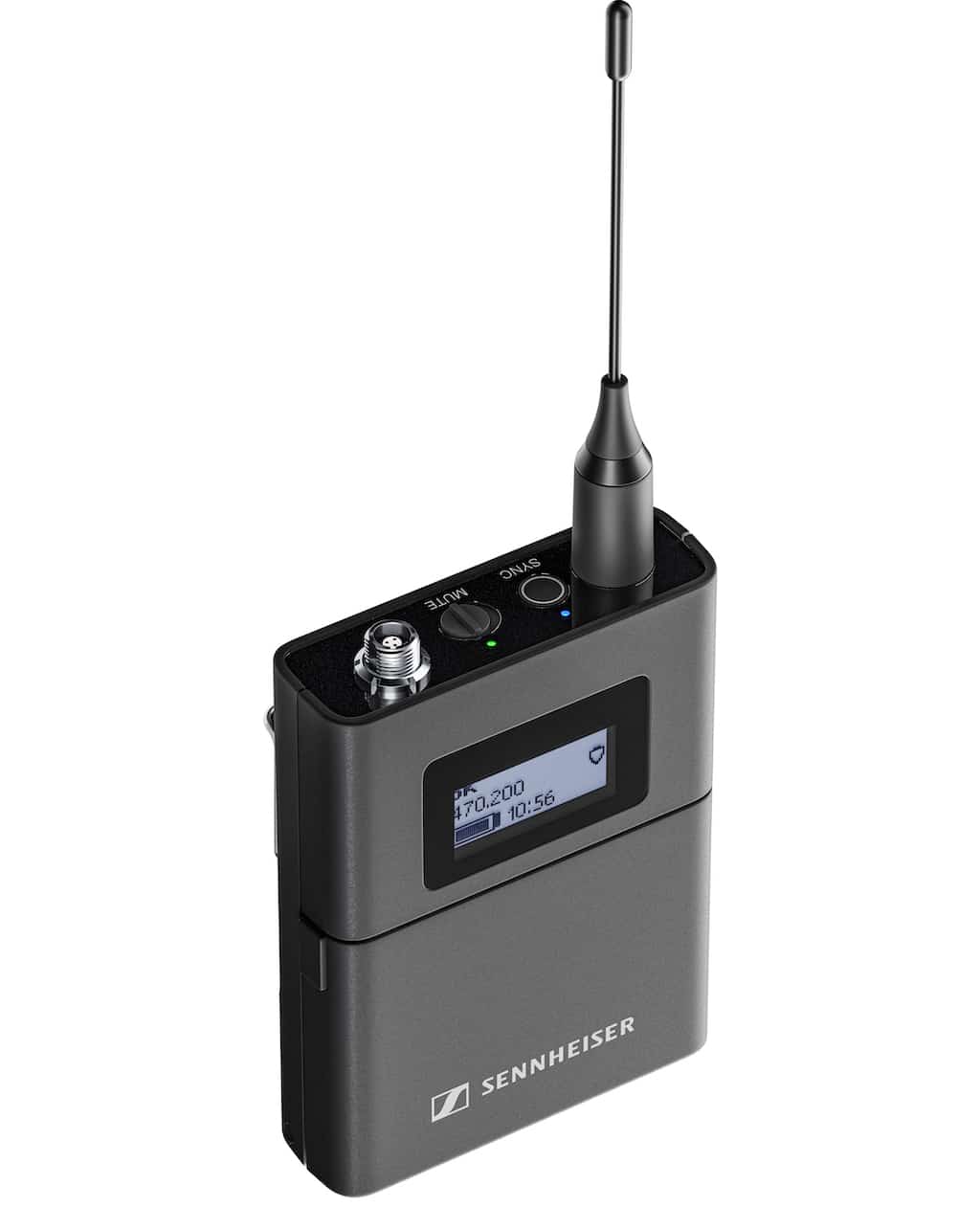 Der Taschensender wird mit einer 3-poligen Buchse oder einem 3,5-mm-Klinkenanschluss erhältlich sein, sodass er mit allen digitaltauglichen Sennheiser-Ansteck- und Headset-Mikrofonen, mit dem Neumann Miniature Clip Mic System sowie Instrumentenkabel verwendet werden kann. Der Taschensender ist mit einem programmierbaren Mute-Schalter ausgestattet und bietet eine Kabel-Emulation für Gitarristen und Bassisten.